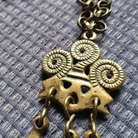 Kalevala Korun Laukaan solki -kaulakoru, harvinainen. Riipus (sis ketju ja koru) on pronssia.
