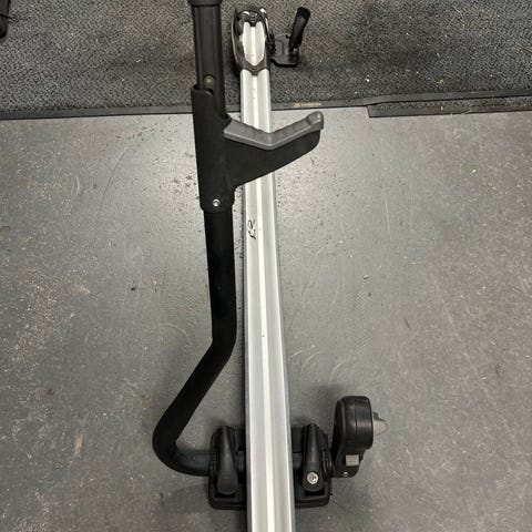 Myydään monet reissut nähnyt pyörän kuljetusteline. On naarmuja ja kolhuja, mutta edelleen toimiva. Mukaan t-ura kiinnikkeet, sekä kattotelineen ympäri kiinnittyvät kiinnikkeet.