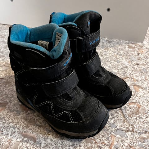 Hyvä käytetty kunto, tukevat kengät. Tarrat pitää hyvin. Fleecevuori painunut, mutta lämpimät.