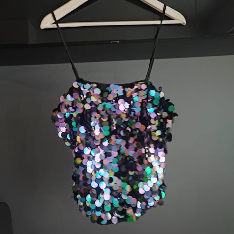 Upea paljettitoppi, jokainen paljetti käsin ommeltu, laadukas Boutique laatua. Topissa on alustoppi kiinteenä mukana. Erittäin hyvä kuntoinen, uutta vastaava kunto. Nouto Kalasatama tai postitus toridiilin kautta..