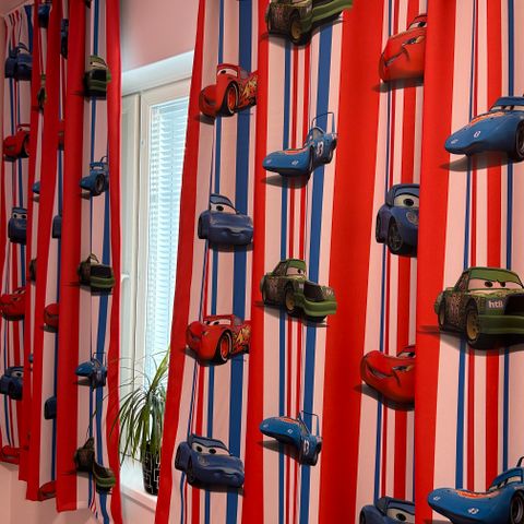 Disney Pixar pimennysverhot lasten huoneeseen. Verhot ovat tummansiniset ja niissä on kilpa-autojen kuvia. Materiaali ja tarkemmat hoito-ohjeet löytyvät tuotetunnisteesta. Sopii lastenhuoneen sisustukseen. 140*160. Verhoja on 4kpl. Hyvin pimentävät. Voi myös ostaa erikseen 20e/2kpl.