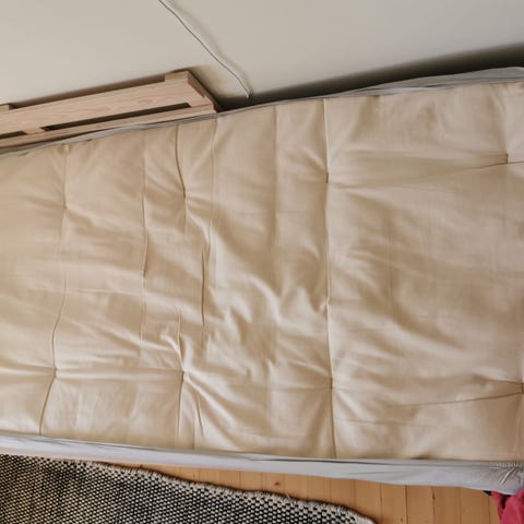 Kaksi 90 cm levyistä patjaa. Muuten hyväkuntoisia mutta molemmissa päällisissä huomattiin myyntiin laittaessa home tms läiskä joka ymmärtääkseni pestävissä pois esim etikalla. Itse patjassa ei jälkiä.