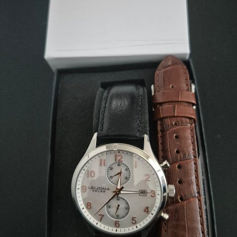 Tämä on Leijona Ropi 5012-2418 -rannekello, jossa on safiirilasi ja harmaa kellotaulu. Muutaman kerran vain käytetty eikä ole vikoja. Ei naarmuja lasissa tai muualla. Kysy lisää jos on kysyttävää. Pattereilla toimiva.