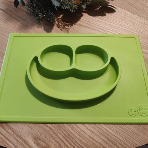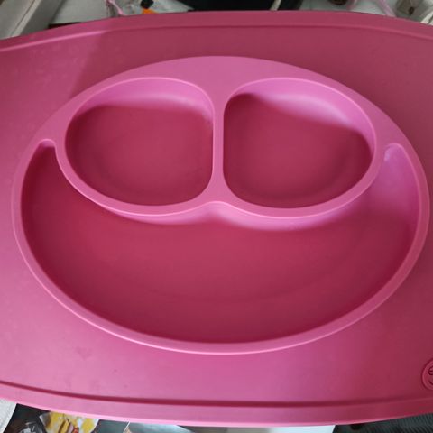Vähälle käytölle jäänyt EzPz -merkin pinkki silikoninen ruokailualusta vauvalle/taaperolle. Pysyy hyvin kiinni pöydässä.