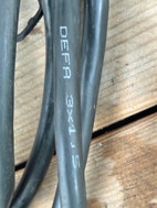 Defa lohkolämmittimen Virtajohto 2,5 m, 3x1,5 S virtajohto mustana. Johto on käytetty ja siinä näkyy käytön jälkiä.