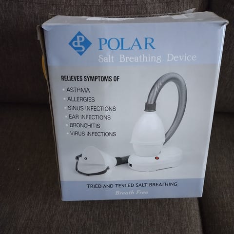 Käytetään suolaterapialaitteena ja auttaa avaamaan tukkoisen nenän.