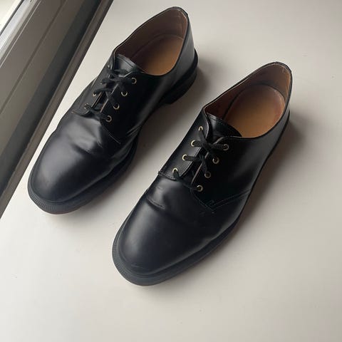 Dr. Martens juhlakengät koko 44, mustaa nahkaa. Kengissä on perinteinen Dr. Martens -tyylinen kumipohja ja mustat nauhat. Sopivat juhlakäyttöön ja muuhun siistiin pukeutumiseen.