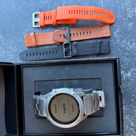 Garmin Fenix 5plus sapphire crystal dlc titanium Urheilukello. Käytön jälkeä näkyy, kunto hyvä ja toimii niinkuin pitää. Netistä löytyy lisätietoja ominaisuuksista. Uutena ollu n. 1500€ ylihintainen kikkare. Nyt käytettynä sopuhintaa. Laatikot,laturinjohto ja rannekkeet kuuluu hintaan.