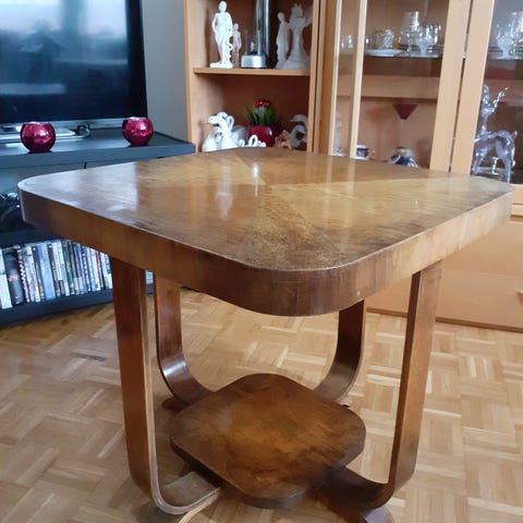 Art Deco -tyylinen, uniikki vintage-sohvapöytä arviolta 1900-luvun puolesta välistä. Pöydänjalka on valmistettu messingistä ja pöytälevy travertiinista. Mahdollisesti italailaisen Tecnon valmistama ja Osvaldo Borsanin suunnittelema. Vintage-esineelle tyypillistä kulumaa ja patinaa, mutta yleisesti ottaen kunto on hyvä. Ostettu Nordistenista vuonna 2022 ja koska pöytä ei mahdu uuteen kotiin niin se on ollut varastoituna nyt puoli vuotta. Nouto Laajasalosta.