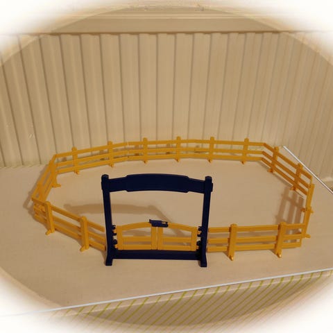 Schleich 4-osainen laidunaitaus, kuvissa näkyy mittatietoja.