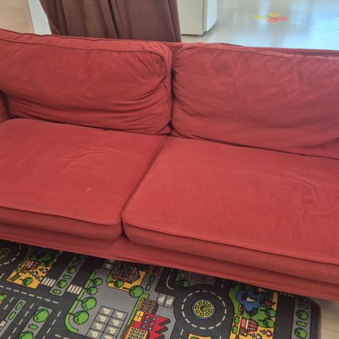 Myydään Ikean sohva, yleisilmeeltään siisti. Taloudessa on ollut kissa, joten langanpurkaumaa on sohvan kulmissa ja muutama karva saattaa tulla vielä matkaan.