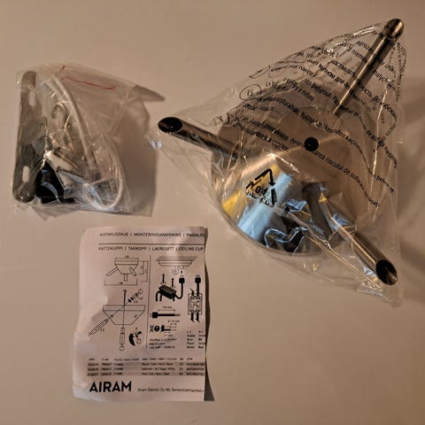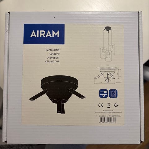 Uusi käyttämätön airamin mattamusta kattokuppi kolmelle valaisimelle. Myydään tarpeettomana eteenpäin. Vain nouto