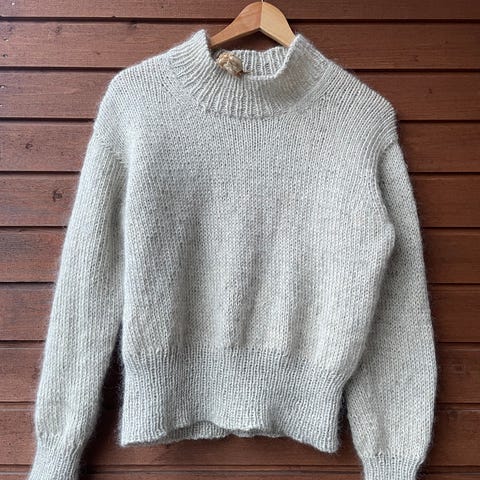 Ohuesta villasekoitelangasta neulottu luonnonvalkoinen kaarrokeneule.