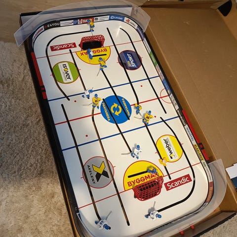 Myydään toimiva ja ehjä retro jääkiekkopeli. Kaikki vivut toimii, ukot ehjiä, vain yksi kolhu (kuva 6).