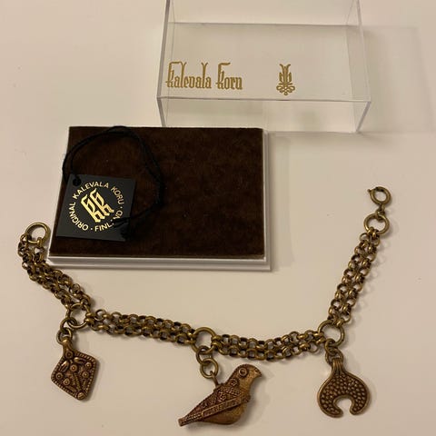 Kalevala merkkinen pronssinen aarrekääty rannekoru.Ainoa ,joka vaihdettu on tuo kiinnityslukko.Minusta sen pitäisi olla pyöreä,mutta varma en ole asiasta.