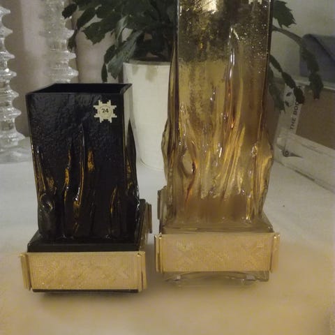 E wännin signeeraama maljakko . Laatassa kaiverrus, jonka laatan saa mahdollisesti irti