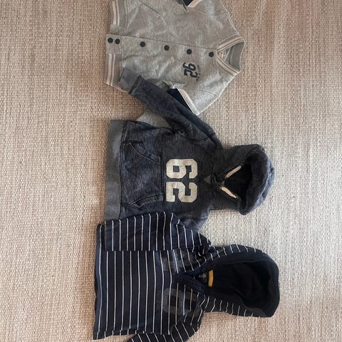 Kolme siistikuntoista lasten hupparia (college). Kahdessa vetoketju. Yhdessä kokomerkintä 92/98, mutta on samankokoinen kuin kaksi muuta, joissa 98/104 merkintä. Lindex, Basefield & H&M.