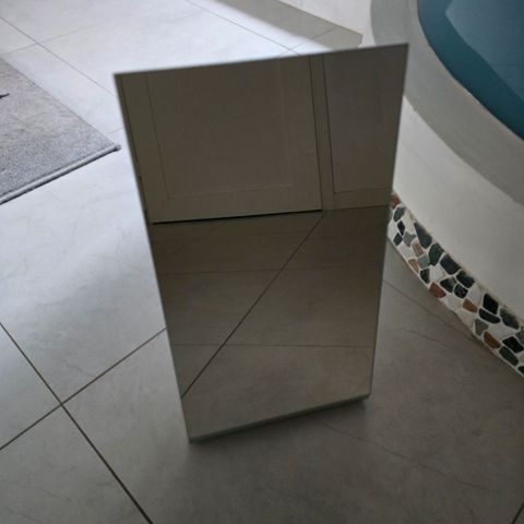 Kuvan muikaine pöytäpeili. Pienet laatikot.