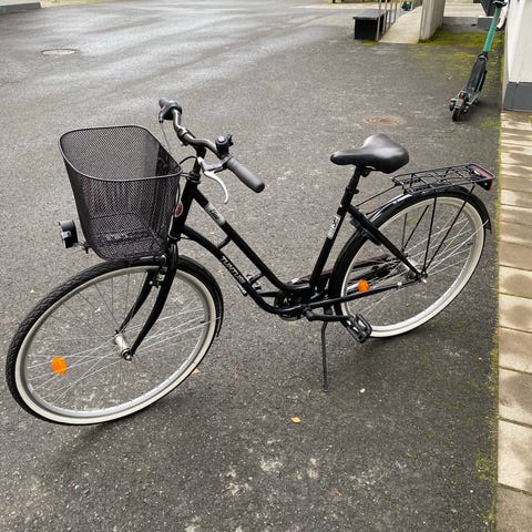 Uniikki Crescent (Lotta) polkupyörä, jossa pyörään kiinni hitsattu kori. Väri turkoosi, maalipinnassa kulumaa joissain kohdissa. Joustava ja hyvä penkki. Kolmivaihteinen. Sopii hyvin lyhyen matkan ajoon kaupungissa.