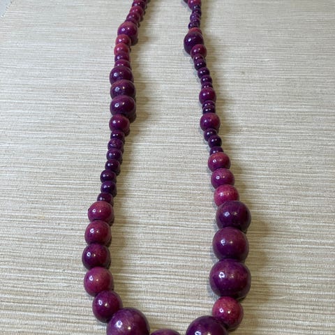 Setti puuhelmikoruja. Turkoosissa kaulakorussa hieman kulumaa.