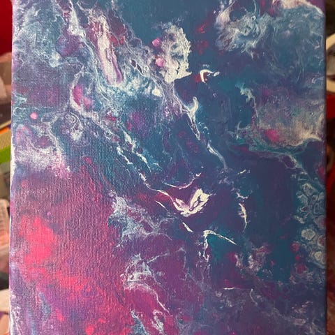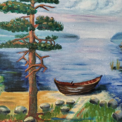 Iso maalaus koko 76 x 56 cm. jossa on talvimaisema ja luminen mökki. Maalaus on kehystetty. Taiteilija maalausta harrastava.