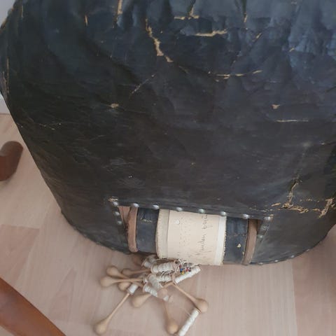 Vanha hyväkuntoinen ompelutuki nahkatöihin. Nahkainen sarana uusittu.