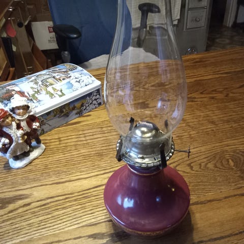 Muistuttaa vanhaa öljylamppua. Lämmin valo. Korkeus 42 cm.
