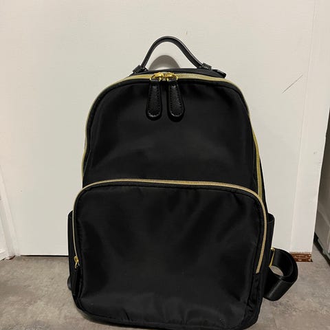 Pari kertaa käytetty söpö pikku reppu, jossa pari sisä taskua. Paino nappi nepparin toinen puoli puuttuu, mutta pysyy hyvin ilman sitäkin kiinni kiristys nauhoilla.