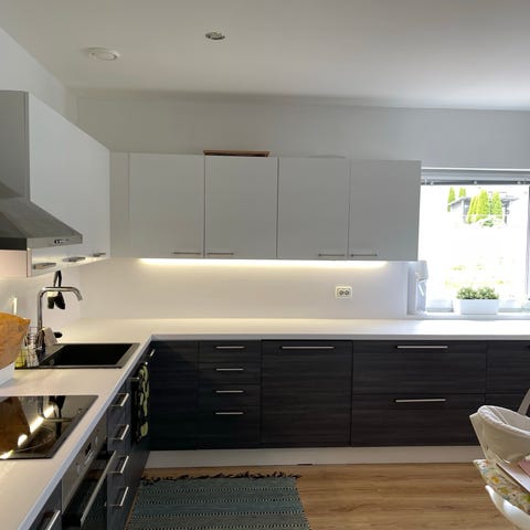 Noblessan yläkaapit, mustalla rungolla, ovien värinä musta betoni. Mikrokaappi 60cm, 30 cm kaappi, 2x60 cm kaappi, kulmakaappi 80x80, liesituuletin kaappi 90 cm ja 80 cm pariovi kaappi. Integroidut valot. Liesituuletin ei sisälly hintaan. Kuin uudet, virheettömät.