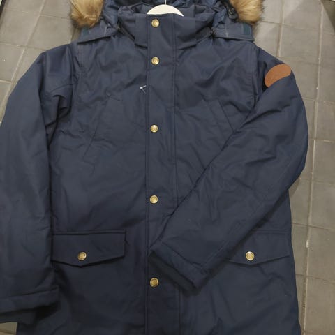 Hampton Republic 27 lasten takki sinisenä, koko 170, suunniteltu tytöille. Takissa on irrotettava huppu, jossa tekoturkisreunus, sekä vetoketju- ja nappikiinnitys. Sisävuori on pehmeää materiaalia, joka tarjoaa lisälämpöä. Takki sopii ulkoiluun ja arkipukeutumiseen.