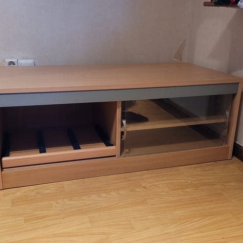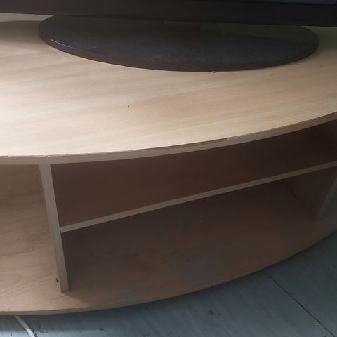 Hyväkuntoinen tv-taso. Koko: leveys 90x korkeus 56x syvyys 35cm kapeimmasta kohdasta, keskeltä 43cm syvyysmitta. Irrotettavalla pyörivällä tasolla, jolla tv:tä saa käännettyä.