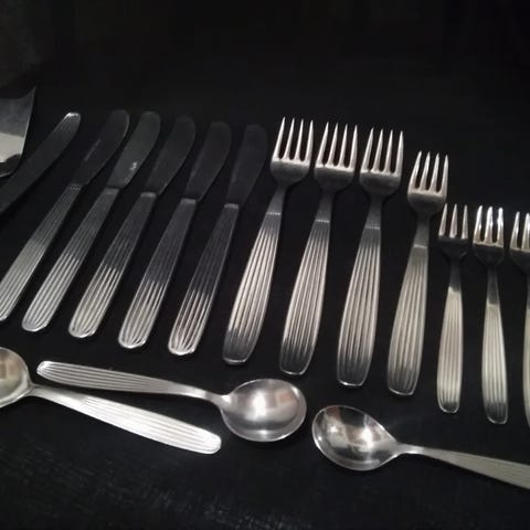 Vanhat Hackmannin Scandia-aterimet, suunnittelija Kaj Frank.