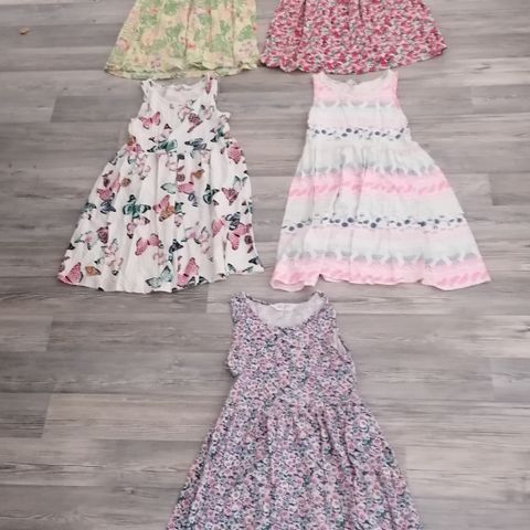 Myydään 4 kpl H&M -merkkisiä tyttöjen kesätrikoomekkoja, koko 134 cm.