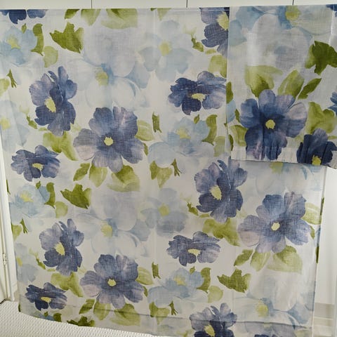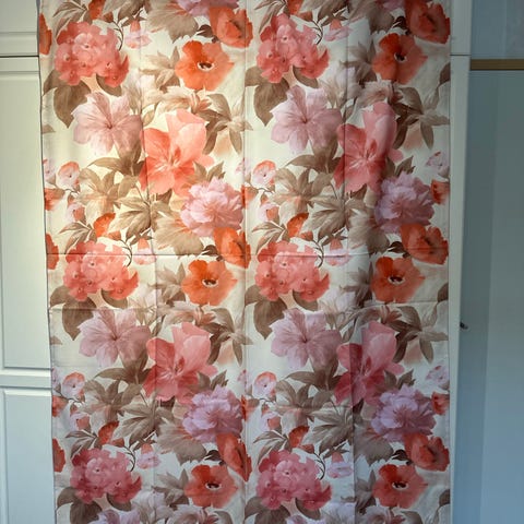 Kauniit, uudenveroiset kukkakuvioiset verhot vaalealla pohjalla. Koko L 90 cm x 218 cm x 2 kpl. Hapsujen korkeus 40 cm. Ei värjäymiä, valo heijastaa kameraan.