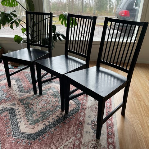 Neljä pinnatuolia, lakattua koivua. Liitokset ehjät.