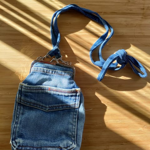 Farkku olkalaukku kuvioilla