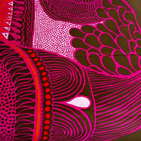 Uusi, käyttämätön Marimekon Rusakko- puuvillakangas, suunnittelija Aino-Maija Metsola.