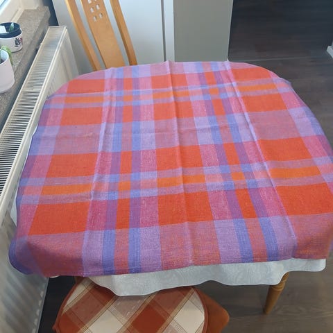 Vintage pöytäliina, Alajärven kotitekstiili, kotimainen, ruudullinen