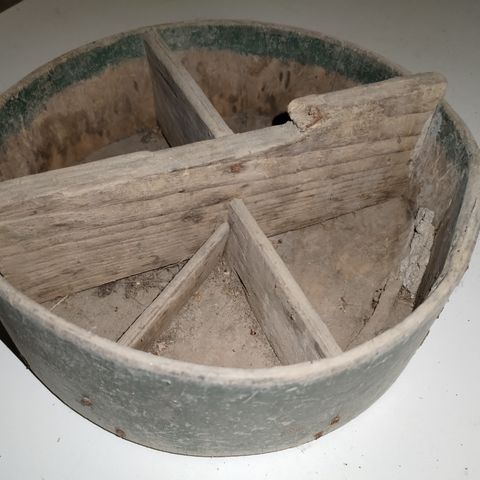 Kuvien mukainen vanha puuastia, alkuperäinen käyttö saattaa olla viilin hapattamiseen ta taikina astiana. On ikäisekseen hyväkuntoinen . Voi pitää hedelmä tai kukka astiana.
