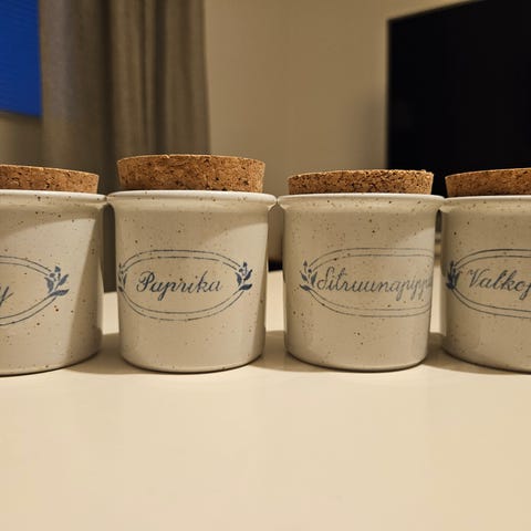 Pentik Halla maustepurkki. Kaunis korkkikantinen purkki. Vähällä käytöllä ollut.