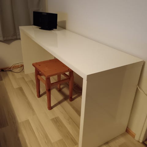 Haluaako joku vanhan kirjoituspöydän? Toisessa reunassa halkeama.