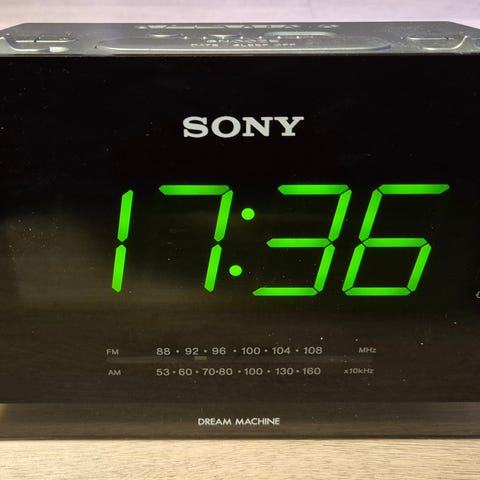 Sonyn isonäyttöinen kelloradio.