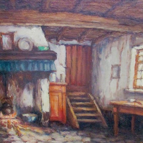 Perintönä tullut, en osaa maalauksesta kertoa enempää. Kehykset halki ja likaiset.