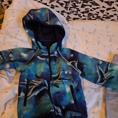 Name it vihreät housut ja paita 92, polvi paikattu siististi