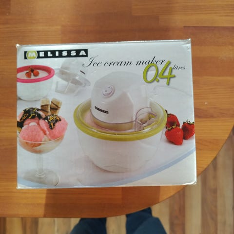 OBH Nordican jäätelökone yhdellä kulholla. Nopeat jäätelöherkut syntyy tällä laitteella käden käänteessä.