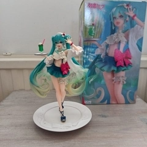 Hatsune Miku keräilykorttipakka, jossa on animehahmo. Juoksuiekkakoristeet. Kullanvärinen hiekka voi virrata.