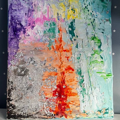 Kuvan mukainen isohko abstrakti teos kauniit värit fleksilasi päällä mustat raamit koko 83cm x 83cm raameineen ,hinta 20 e nouto tai postitus kulut ostajalle