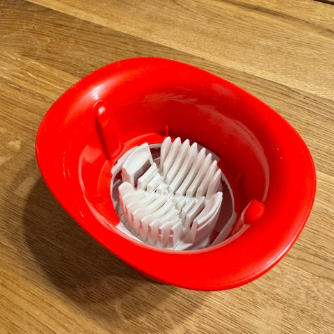 Vanhempi Tupperwaren vihannesleikkuri. Ok kuntoinen, toimiva. Säiliössä perus käytössä tullutta käyttönaarmua.