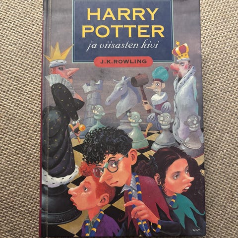 Harry potter ja viisasten kivi 6. Painos. Kirja on hyvä kuntoinen, ei merkintöjä, sivut ehjät. Etukannessa alakulmasta hiukan lähtenyt väriä (kuvat) ja sivut kellertävät (epätasaisesti jakautuva väri, katso kuvat). Eläinkoti. Ostaja voi halutessaan varmistaa kunnon hakiessaan.