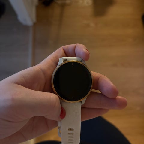 Käytetty, muutamia naarmuja kellotaulun lasissa, mutta ei vaikuta käyttöön. Mukaan myös säädettävä kangasnranneke, laturijohto ja alkuperäinen laatikko.